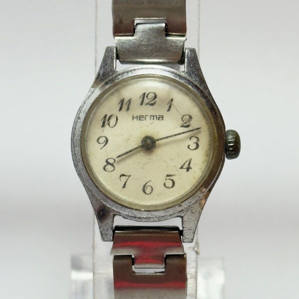• HERMA - Relógio a corda, não funciona. Pulseira: 10mm. Caixa: 2,4cm x 2,4cm, vertical x horizontal, sem contar a coroa. ***ATENÇÃO! ESTE RELÓGIO NÃO POSSUI GARANTIA DE FUNCIONAMENTO. Produto sendo vendido conforme ESTADO, testado, ou não, diz respeito apenas ao momento da catalogação. Recomenda-se revisão.*** Se necessário, solicitar mais fotos, vídeos ou perguntas para análise via e-mail reidaantiguidade@gmail.com, Obrigado pela visita!
